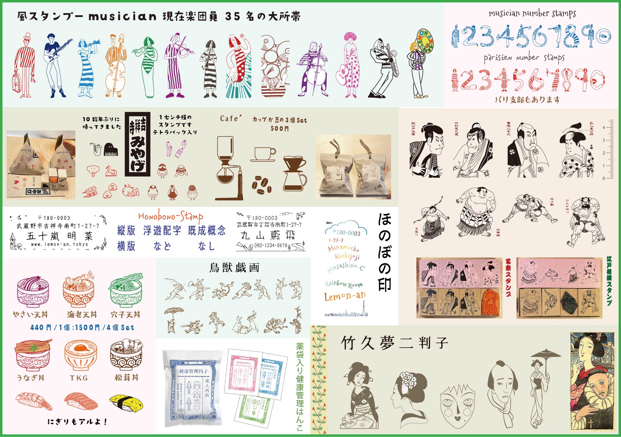 Musicianハンコなどマイナーチェンジしました 病院みたいな薬袋に入ったハンコ 医療ファンシーハンコ うな丼 野菜天丼 などの丼ハンコ そして バンドマンと銘打った 音楽家のハンコ も登場 庵のかわいい日付印Chilldate 御朱印 コロはん さつきハンコ 和ざいく 和彩スタンプ台 いろもよう FAX 注文書 TOP